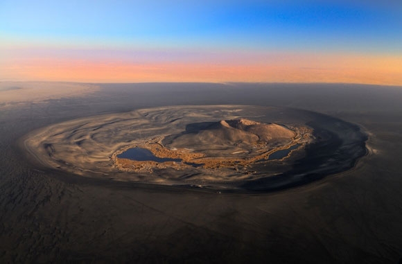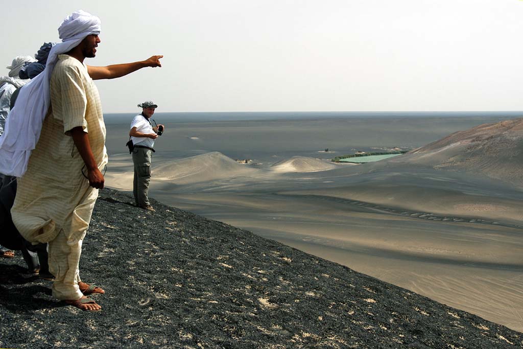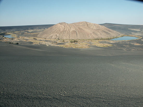 توجد في بطن الصحراء ليبية منطقة اشبه ماتكون بسطح القمر في منطقة منعزلة جنوب الهروج الاسود بنحو100ك.م وسط سطح سرير تيبستي من اغرب المناظر الموجودة في كوكب الارض وهي عبارة عن جبل بركاني او بمعني اخر مخروط بركاني يتكون من بقايا طفحية ورماد بركاني ومحاط ببحيرات جميلة محيطة بها اشجار النخيل وهي تقع جنوب الهروج الابيض وارض لونها اشبه بسحط القمر اما البحيرات علي شكل هلالية وهي تلاتة بحيرات كبيرة شرقية وغربية وجنوبية وبحيرة كبريتية دات لون احمر اما الفوهة محاطة بهالة كبيرة من تربة سوداء كما يمتل الهروج الاسود ظاهرة اخريمن ظراهر الطبيعة الجدابة بما يتمتع به منيشكل تنوع في صخور البركانية وتضاريسية المتجعدة وهو اوسع رقعة تغطيها البراكين الخامدة في افريقيا ويقع الهروج الاسود في وسط ليبيا