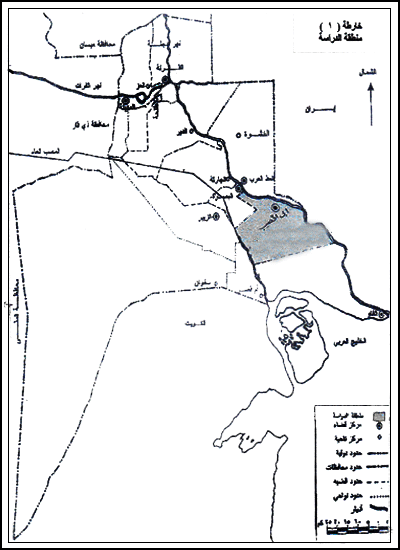 المصدر : الهيئة العامة للمساحة ، الوحدات الادارية لمحافظة البصرة ، 1994